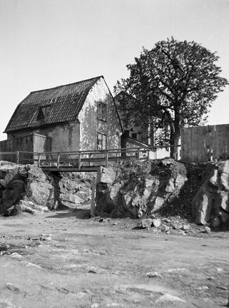 Brännkyrkagatan 114. Sprängning och sänkning av gatunivån. Dåvarande kv. Kaninen Mindre, nu kv. Sparren