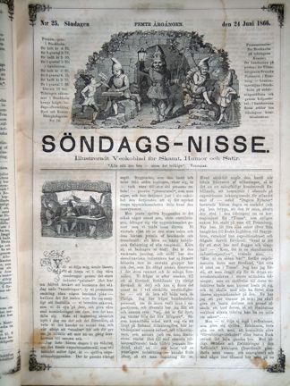 Bilden är tagen ur ett privatägt exemplar av Söndags-Nisse, men tidningen finns i Kungliga Bibliotekets samlingar.