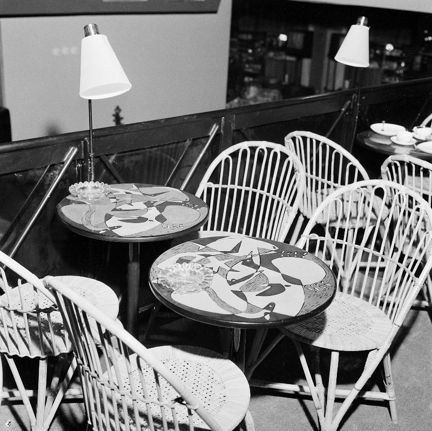 Stureplan 2, Restaurang Regnbågen är ombyggd och nyinredd. Stig Lindbergs emaljerade bord på läktaren