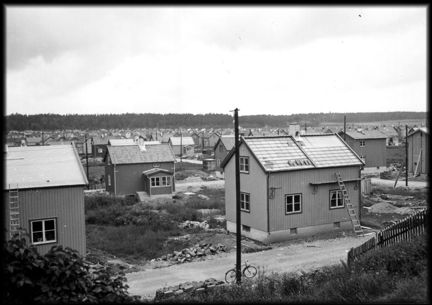 Enskede småstugeområde under byggnad på Enskedefältet från Enskedehöjden