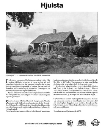 Texten kommer från en informationstavla som var placerad på Hjulstas tunnelbanestation under kulturhuvudstadsåret 1998. Den togs fram i projektet "Stockholms spår" i samarbete med Stockholms stadsmuseum, SL (Storstockholms lokaltrafik) och Kulturhuvudstadsåret Stockholm 98.