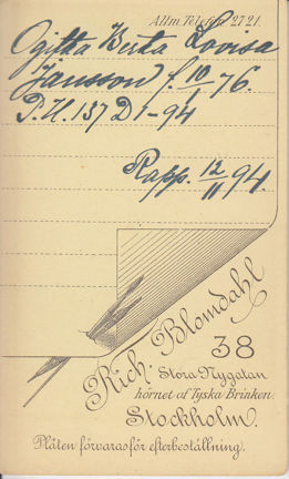 Polisfotografiet av Berta Lovisa Janson är taget 1894. I november det året hade polisen hittat henne och en väninna sovande i Artilleriregementets stall. Det låg i närheten av regementets kasern och Berta och hennes kamrat anklagades för att ha prostituerat sig i kasernen. Hon nekade och dömdes bara för lösdriveri – hemlöshet.