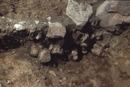 Stensättning, rektangulär, 3 x 4,5 meter stor och 0,6 meter hög, med tydlig begränsning. Anläggningen var uppbyggd av 0,2-0,75 meter stora stenar lagda i 1-2 skikt med mylla mellan stenarna. I centrum av anläggningen saknades stenpackning. Botten utgjordes av pinnmo och berg.