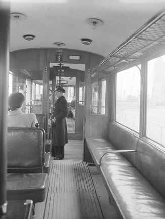 Spårvägen. Interiör från gamla Nockebyvagnen