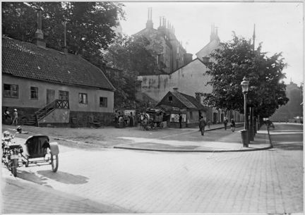 Huset till vänster på bilden tillhörde fastigheten Såpsjudaren 1.2 och revs 1920.