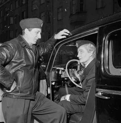 Den första kvinnliga taxichauffören i stockholmstrafiken, Maud Hansson-Fagerberg, blir avlöst av Sven Jansson efter debuten. (Tre dagar senare började ytterligare två kvinnliga taxichaufförer)