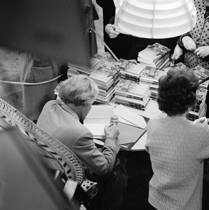 Författaren Per Anders Fogelström signerar boken ""Barn av sin stad""