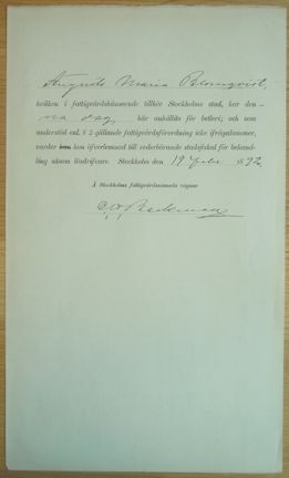 Bilagt i protokollet finns ett meddelande från Fattigvårdsnämnden, daterat den 19 februari 1892, om att Blomquist inte kan komma i fråga för understöd. Blomquist hade tidigare tagits in på förhör 1886, 1888 och 1890.