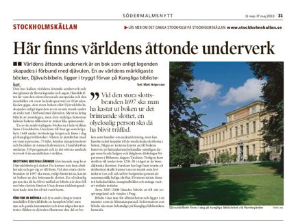 Artikel av Marit Holgersson i tidningen Södermalmsnytt, maj 2013