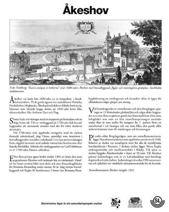 Texten kommer från en informationstavla som var placerad på Åkeshovs tunnelbanestation under kulturhuvudstadsåret 1998. Den togs fram i projektet "Stockholms spår" i samarbete med Stockholms stadsmuseum, SL (Storstockholms lokaltrafik) och Kulturhuvudstadsåret Stockholm 98.