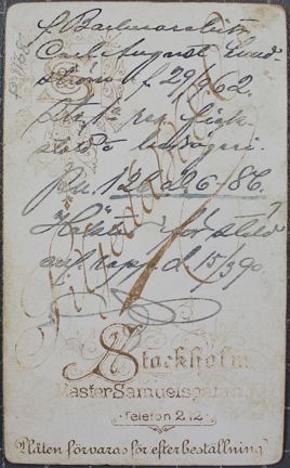 Bilden är tagen i Liljedahl & Co:s ateljé på Mäster Samuelgatan 39 (i dåvarande fastigheten Gropen 8)