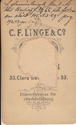 1889 greps förre glasmästeriarbetaren Karl Albert Broling för stöld. I samband med hamnade det här fotografiet i polisens samlingar. Det är oklart om detta var Brolings egna visitkort eller om polisen anlitade C. F. Linge & Co för att fotografera brottslingar.