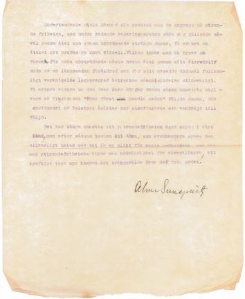 Det här exemplaret återfinns i Anna Lindhagens personliga arkiv. Uppropet har genom Lindhagens försorg skickats ut till en rad kända personer med uppmaning att skriva på uppropet och skicka sitt svar till Lindhagen på Floragatan 15. En rad svarsbrev finns bevarade i arkivet och några av dem finner du här på Stockholmskällan.
