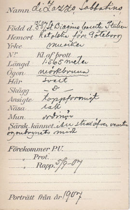 Polisens uppgifter om Sebastian di Zazzo 1907
