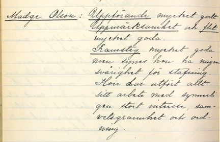 Så här står det i omdömesboken om Madge Olsson: