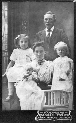 Grupporträtt av Emilia och Gustaf Gustafsson tillsammans med barnen Rut 5år, Ragny 1 år och Rea 7 veckor.