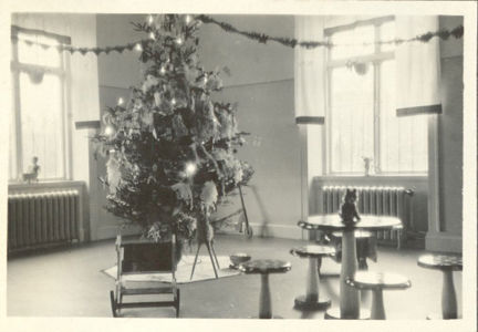 Personalen gjorde sitt bästa för att göra vistelsen dräglig. På första bilden ser vi barnen samlade framför julgranen. På den andra bilden ser vi julgranen i ensamt majestät.