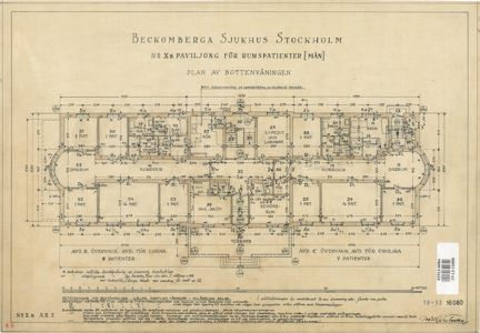 Källa: Beckomberga sjukhus i Stockholm. Berättelse över sjukhusbygget avgiven av Sjukhusets byggnadskommitté i december 1937, tryckt i Stockholm 1938. s. 20.