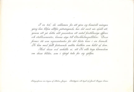 En liten tidsresa till det finare Stockholms tidiga 1900-tal. 19 sidor.