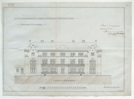 Kronprinsessan Lovisas Vårdanstalt för sjuka barn invigde ett nytt sjukhus 1899. Det ritades av Axel Kumlien och uppfördes i kvarteret Kronoberg på Kungsholmen. Sjukhuset bestod av flera byggnader som satt ihop genom förbindelsegångar. Här finns ritningar till den medicinska paviljongen från 1897.