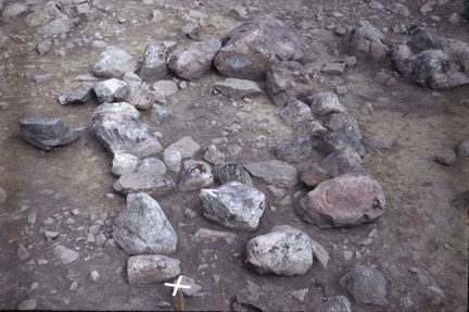 Stensättning, rektangulär, 3 x 4,5 meter stor och 0,6 meter hög, med tydlig begränsning. Anläggningen var uppbyggd av 0,2-0,75 meter stora stenar lagda i 1-2 skikt med mylla mellan stenarna. I centrum av anläggningen saknades stenpackning. Botten utgjordes av pinnmo och berg.