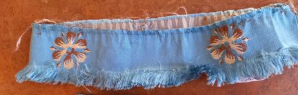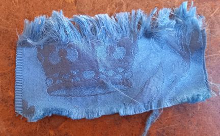 o Gräddvitt tyg, samma mönster som det blå (vävt för drottning Victoria år 1921)