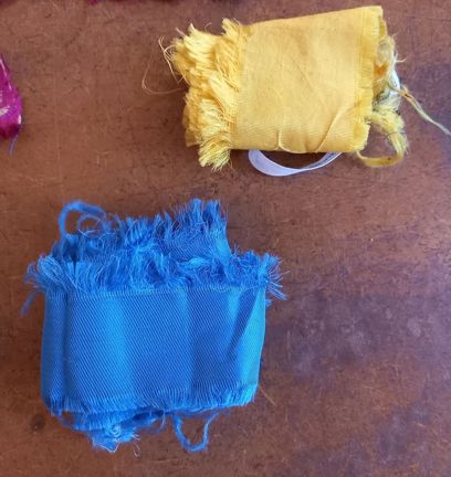 Tygprover och band i siden från väverskan Jenny Lindbergs väska. Lindberg var en skicklig väverska som arbetade för K.A Almgren sidenväveri under åren 1904-1944. Samlingen består av flera prover av tyger Jenny vävt: