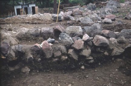 Stensättning, rund, 7,5 meter stor och 0,8 meter hög, med tydlig kantkedja bestående av 0,35-0,6 meter stora stenar. Anläggningen var uppbyggd av 0,2-0,6 meter stora stenar lagda i 3-4 skikt med mylla mellan stenarna. Botten utgjordes av pinnmo och berg i SV. I anläggningens S delar påträffades ett ca 3 x 6 meter stort och ca 0,3 meter tjockt brandlager med sot och kol, innehållande ett järnfragment, keramik, harts, brända ben, tänder och kol.