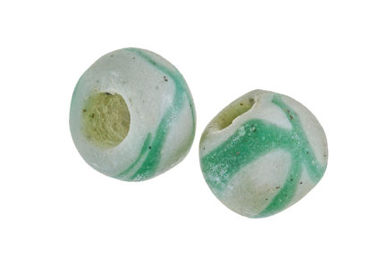 Våren 2015 gjorde arkeologer från Arkeologikonsult ett spännande fynd på Södermalmstorg vid Slussen i Stockholm – två vita glaspärlor med grön ornamentik.