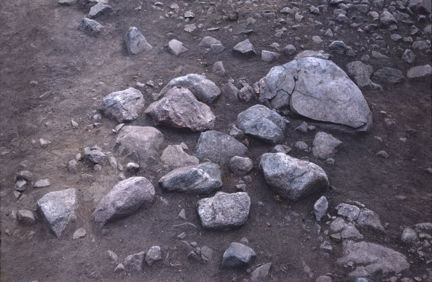 Hela anläggningen täcktes av ett mörkt myllager i vars centrum påträffades ett 0,6 x 1,25 meter stort och 0,2 meter tjockt brandlager, innehållande keramik, en knacksten och brända ben.