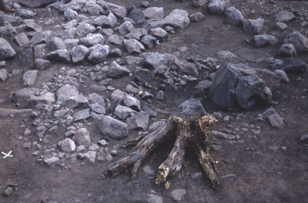 I anläggningens mitt, något orienterad mot V, påträffades ett 1 x 2,5 meter stort och ca 0,2 meter tjockt sotlager, innehållande keramik, harts, bränd lera och kol. I den nordvästligaste delen av anläggningen påträffades en malsten.