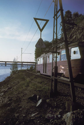 Lidingöbanan vid Herserud. I fonden t.v. Lidingöbron
