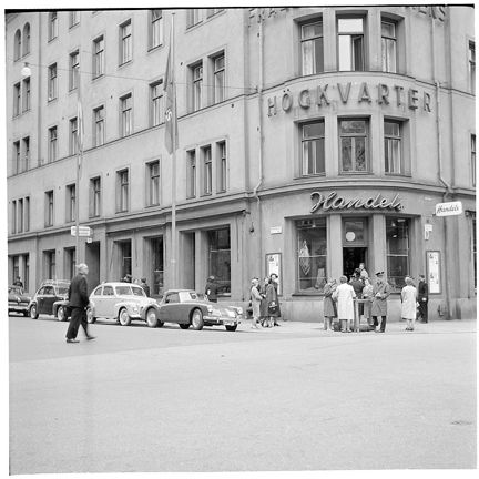 Östermalmsgatan/ Nybrogatan. Frälsningsarméns huvudkontor på hörnet