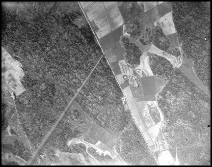Flygbild från ballong från ca 500 m höjd - Ballon Captive - över trakten kring Aspudden. Släplinan når marken vid dagens Pilgrimsvägen i höjd med Fågeltorget i Aspudden.